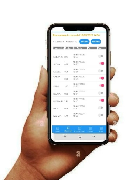 L’App eSecurPoint legge i dati in tempo reale, generando sul tuo dispositivo una lista aggiornata delle persone presenti in azienda, permettendo l’appello e la smarcatura direttamente al punto di raccolta.
